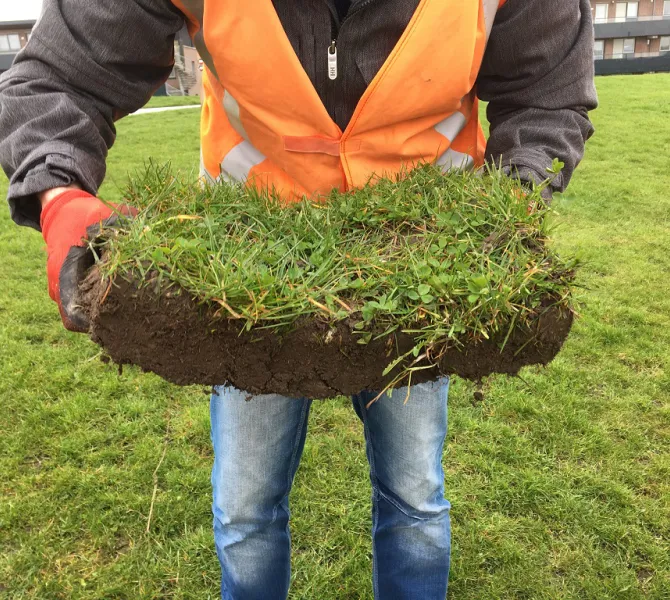 Let op: de doorworteling van de zode kent een seizoensverloop, ’s winters zijn er minder wortels dan ’s zomers. Het tijdstip van de veldproef beïnvloedt dus je oordeel.